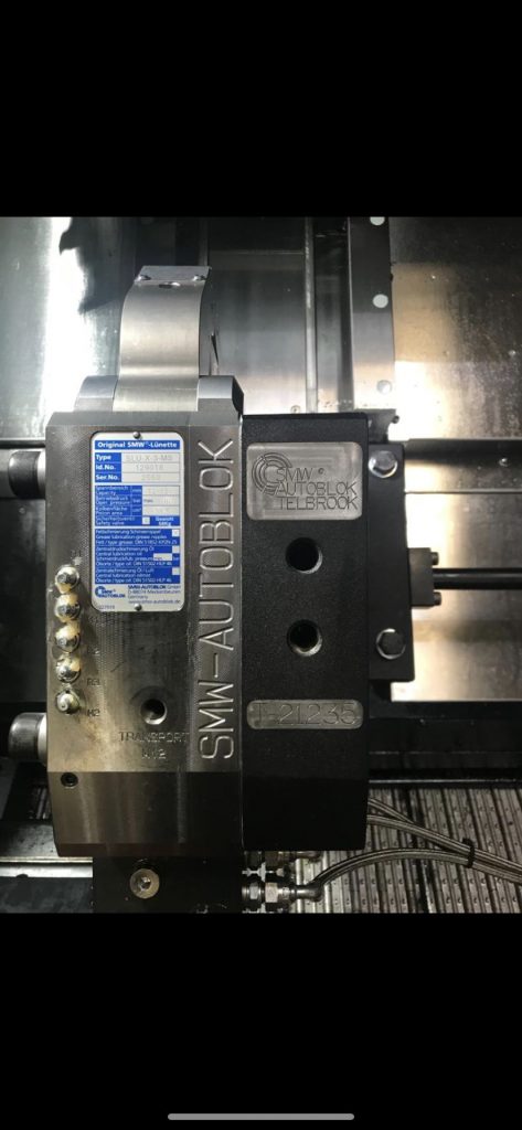 ‘’A recent SLU-X-3 installation completed at the end user by SMW AUTOBLOK Telbrook (UK). Fitted onto a manually operated two-piece steady bracket with slideway guard fixings. Fitted onto a Doosan Puma GT 2600LM’’