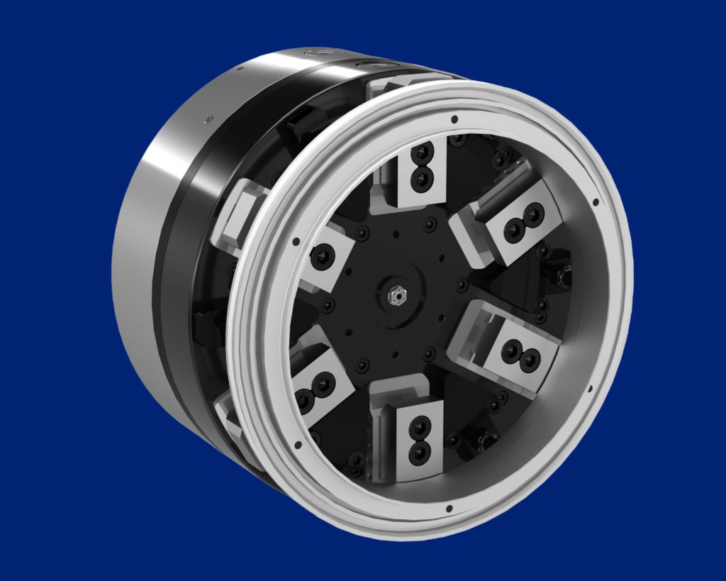 The 6-jaw self-centering option provides a concentric clamp locking plate for all sequential six jaws allowing the chuck to hold round, machined diameters and thin-walled workpieces that require equal wall thicknesses.